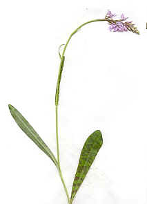 Õisik ruljas, hõredavõitu. Õied kahvatulillad või roosakasvioletsed, violetsete vöötideks ühinenud täppidega. Huul kolmehõlmaline, lõhestunud ühe kuni kahe kolmandiku ulatuses. Keskmine hõlm pikk, kitsas, kolmnurkne, ulatub külgmiste hõlmade vahelt välja. Õitseb juuni lõpus, juulis.